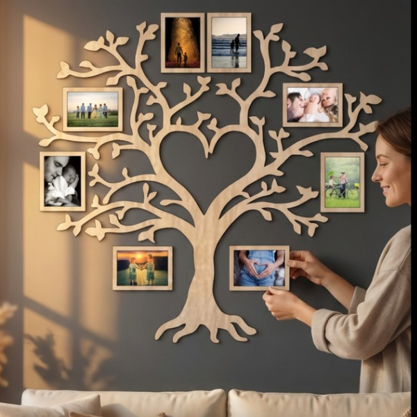 Bemutatjuk Önnek egyedi, fa falra szerelt képkeretünket - Tree , amely a legszebb emlékeit egy gyönyörű műalkotássá varázsolja otthonában.