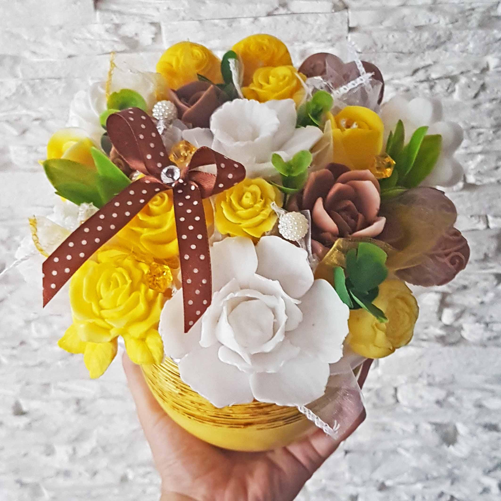 Eredeti szappancsokor - barna, sárga, fehér