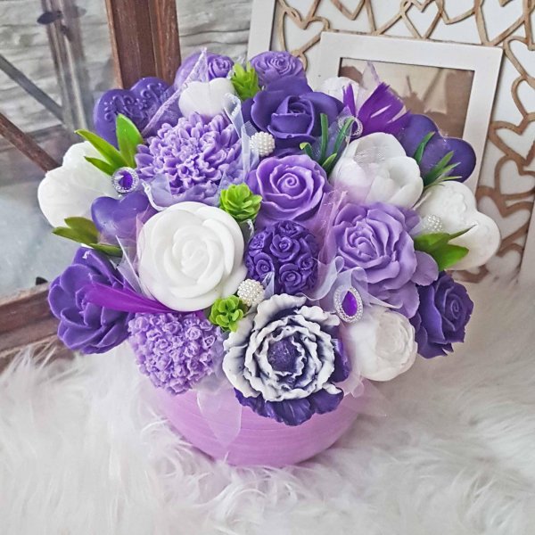 Képzelje el a mosolyt a másik fél, édesanyja, nővére vagy barátja arcán , amikor valami olyan egyedi és gyönyörű, mint a mi eredeti szappancsokronk, a lila és fehér bájos árnyalataiban landol a kezében. Ez a kézzel készített ajándék több, mint egy csokor; ez a tökéletes módja annak, hogy kifejezze érzéseit, értékelje szeretteit, és maradandó emléket hagyjon a szívükben.