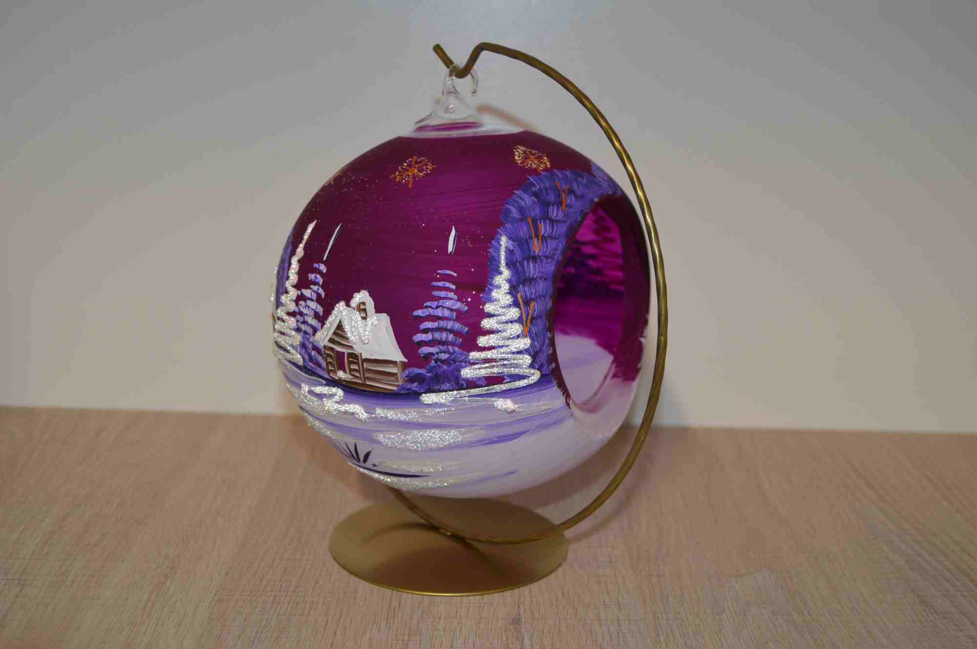 Kézzel festett gyertyatartó állvánnyal, alkalmas karácsonyi dekorációként a belső térbe.